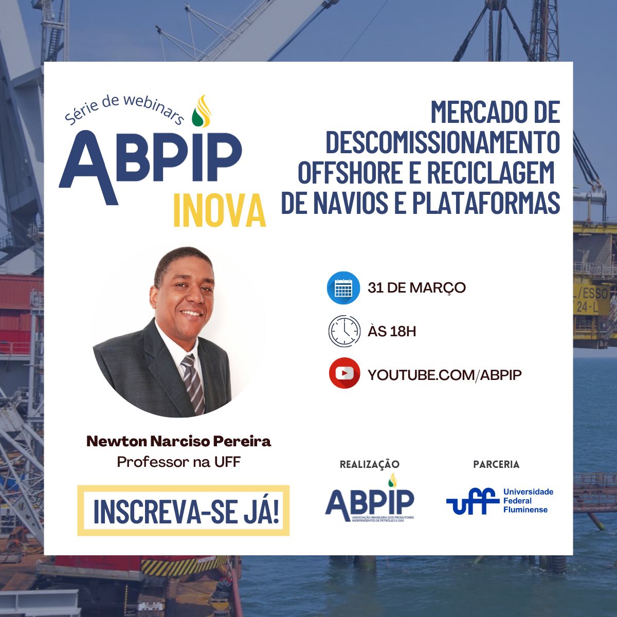 A Associação Brasileira dos Produtores Independentes de Petróleo e Gás (ABPIP) vai realizar, na próxima quinta-feira (31), às 18h, um webinar gratuito para debater sobre o tema "Características gerais do mercado de descomissionamento offshore e reciclagem de navios e plataformas".