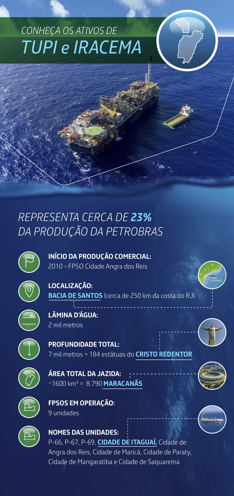 Tupi/Iracema é operado pela Petrobras, com os parceiros Shell e Galp, e a PPSA, representante da União na Jazida Compartilhada de Tupi.
