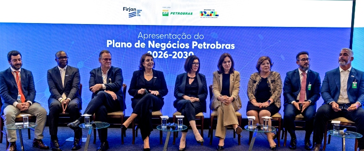 A presidente da Petrobras, Magda Chambriard, esteve na sede da Federação das Indústrias do Estado do Rio de Janeiro (Firjan) para apresentar aos empresários fluminenses o Plano de Negócios 2026-2030. No período, a empresa projeta US$ 109 bilhões em investimentos e mantém alinhamento às diretrizes do Plano Estratégico 2050. Na abertura do evento, em 5/12, o presidente da federação, Luiz Césio Caetano, destacou o papel central da companhia para a economia do Rio de Janeiro e para o desenvolvimento industrial do país.